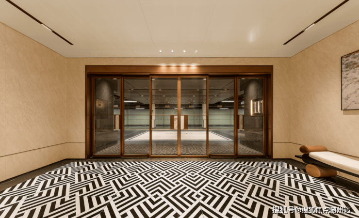 更重要的是,每一栋都配备了精装双首层入户大堂。连地库都升级到精装修标准,灯光系统明亮柔和,导视标识清晰醒目,入户前厅用水磨石地坪铺就艺术氛围。