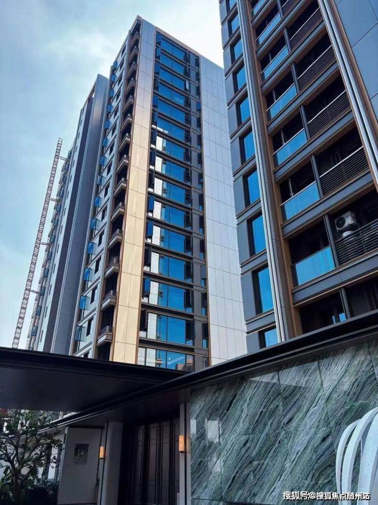 我站在大门口,看到小区楼幢全部封顶,外立面“完全呈现”,看着四面大面积铝板+玻璃的实景质感,很美很有辨识度。