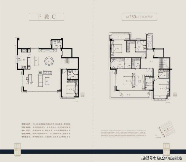 户型方面,主力建面约210-280㎡四层叠墅,采用全套房设计,朝南大开间阳光满堂,主卧“小家化”,步入式衣帽间和独立卫浴间兼备,更大尺度的面积,更开阔的家庭社交区,更舒适的套房空间。约6米层高地下空间,多出一大片公共活动空间。大部分下叠设计了双采光井,在地下室也可以获得充分的自然光。