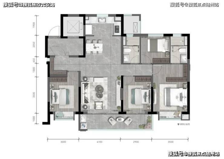 住宅建筑面积为99-139㎡,其中三开间朝南+约6.6米双连阳台的99㎡户型,三房+双明卫空间布局,约9.9米的南向整体面宽,把小户型的面宽尺度做到了极致,采光更佳。家庭公区采用了餐客厅一体化设计,联通U型厨房和景观大阳台,享受复合空间的多样化使用需求。