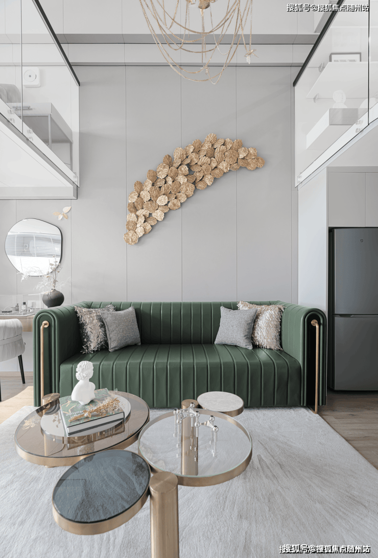 在光影所建构的空间内,将美好以不同方式留下。专为艺术青年打造的线性空间,凝练简洁。牛油果绿皮革长条沙发,哑光质地的特殊材质与透软的浅白地毯形成强烈的视觉冲击,不同材质与颜色的对视感,一如趋势青年冷酷的外表与火热的内心。和而不同,便是他们的生活态度。