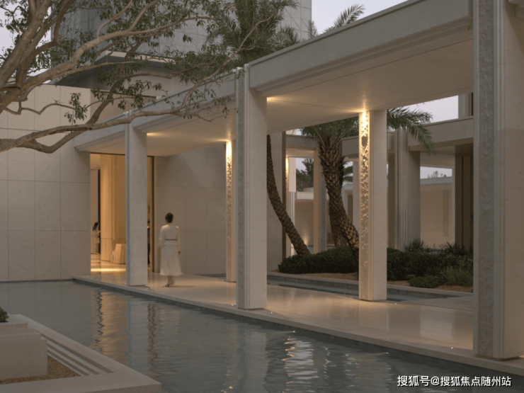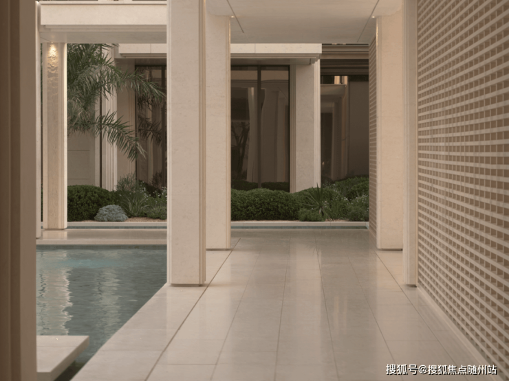 步入二进橄影廊庭,光影在回廊与水面间流转,构成静谧而富有呼吸感的水庭。天光倾泻,水色生辉,如同希腊安缦花园般悠然浪漫,演绎栖居的诗意序章。