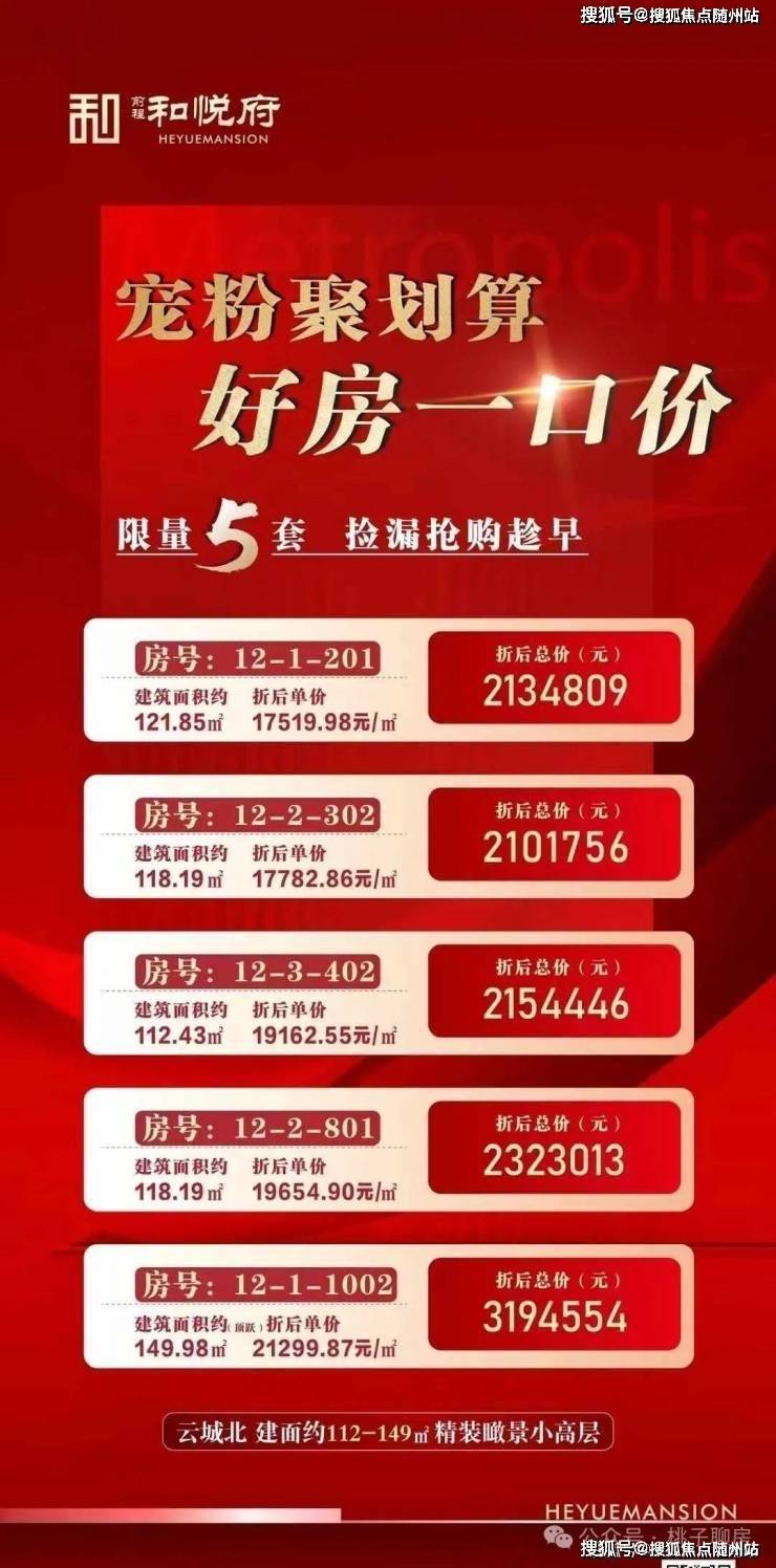 前程和悦府,主力面积118-122平,总价200万。折扣:85折。