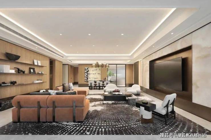 我们打破了传统的空间边界和动线区隔,创造了一种全新的“双客厅”概念,这种设计使得客厅、餐厅、LOUNGE、中西厨以及艺术品展示区能够无缝连接,形成一个开放而又连贯的整体。
