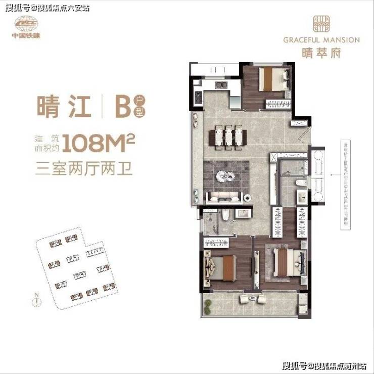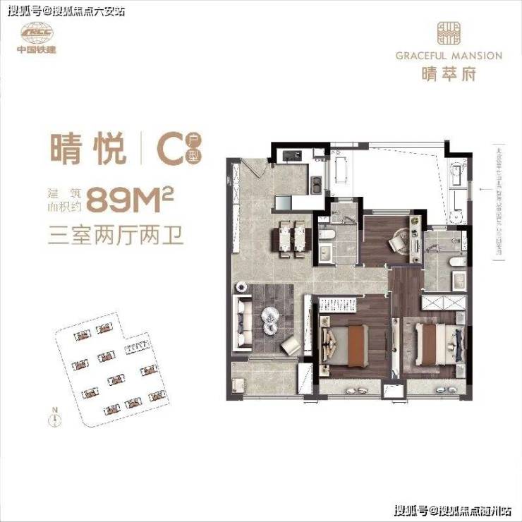 中国铁建·晴萃府深刻洞悉现代家庭的结构变迁与需求升级,匠心打造建筑面积约89-128平方米的精装臻品。约89平方米三房两厅两卫户型采用三开间朝南设计,面宽近9米,U型厨房加主卧套房布局,得房率约80.76%,空间利用率高,适合年轻家庭。