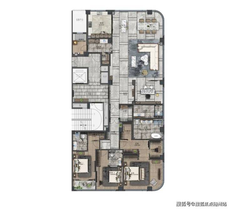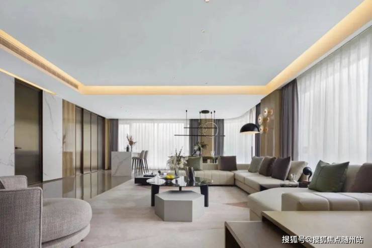 “现代度假风”的角厅,低密大平层,展现现代、轻奢、时尚、艺术、精致的生活韵致,在现代都市中实现轻松的度假生活。
