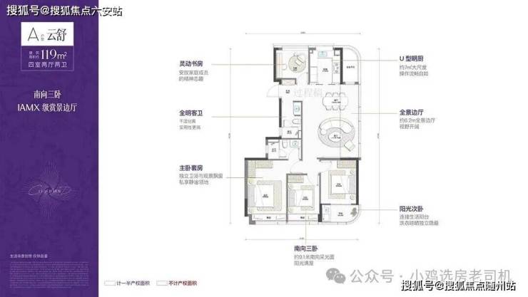 139㎡:空间感强,主卧带270°转角飘窗,采光视野俱佳;