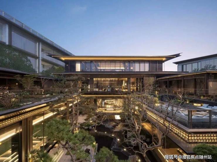 约50米宽的“隐奢”大门是序章;园林是项目灵魂,设计运用宋代山水画,打造“一轴一带八景十巷”的多进式游园体系,真正做到步移景异,窗窗成画;外立面采用香槟金铝板、蓝眼睛石材与玻璃幕墙,融入歇山重檐、纳福悬鱼、黛墨青瓦等宋式元素,实现古今交融;小区还规划约2000㎡下沉式会所,配备恒温泳池、健身房、私宴厅、儿童区,将成为业主专属的高端社交与休闲场域。