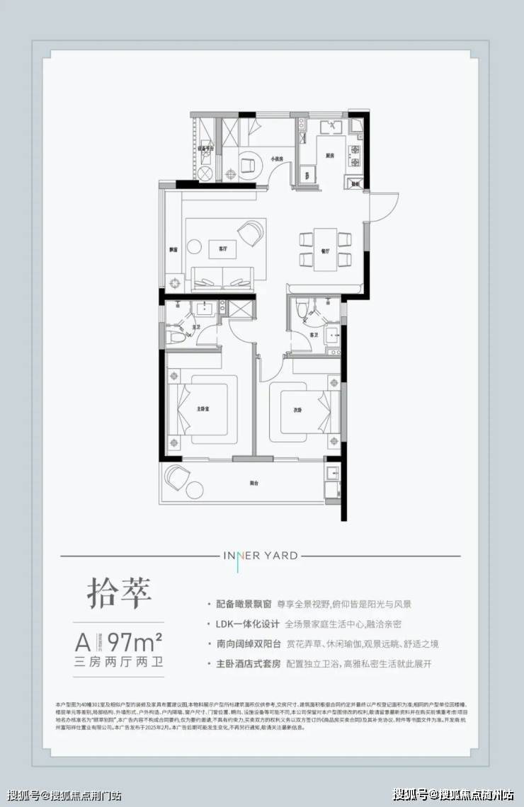 建面约97㎡三室两厅两卫户型都是边套,三面采光,还有很难得的6.4米南向双阳台,3.9米的景观大飘窗,类似的尺度市面上基本要120㎡的户型才能做到。售楼热线:☎ 400 832 8823「售楼处」☎〢🔻已认证〢◆🔻
