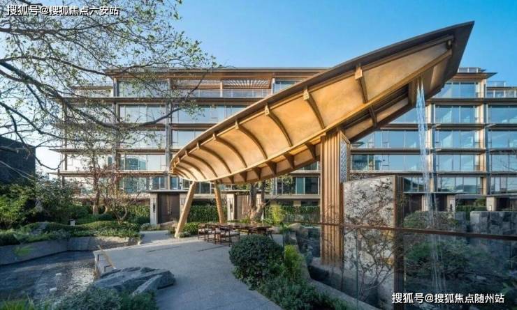 现在的新楼盘,做立体庭院已经不算什么新鲜事,但运河樾还更极致,一做就做了三层的园林。一层是「金舟花园」,以一叶金舟致敬千年的运河文化,也让地面花园有了一个别致的灰空间。