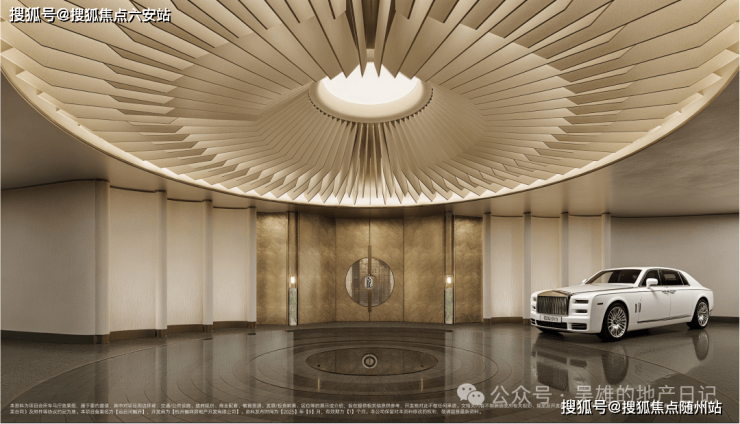 双车马厅设计,取非遗骨扇形制,兼具隐贵气质与礼仪功能,营造静谧、尊崇的归家体验
