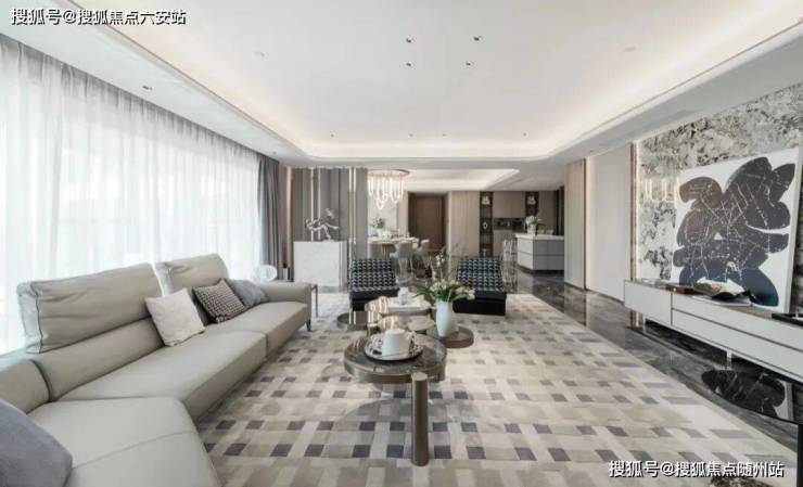 约450㎡“香奈儿”西边套,将原本多见于餐桌和墙面的白金沙奢石,漫铺于双厅地面之上。浅淡得宜的洁白,温润如玉的蜜色,将空间衬得时髦优雅。能眺望钱江两岸的梦幻天际线,“宇宙中心”奥体尽收眼底,也能俯瞰城市霓虹,车水马龙就在脚下。整个中心的璀璨世界定格在落地窗前,像一张巨幅明信片。