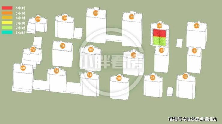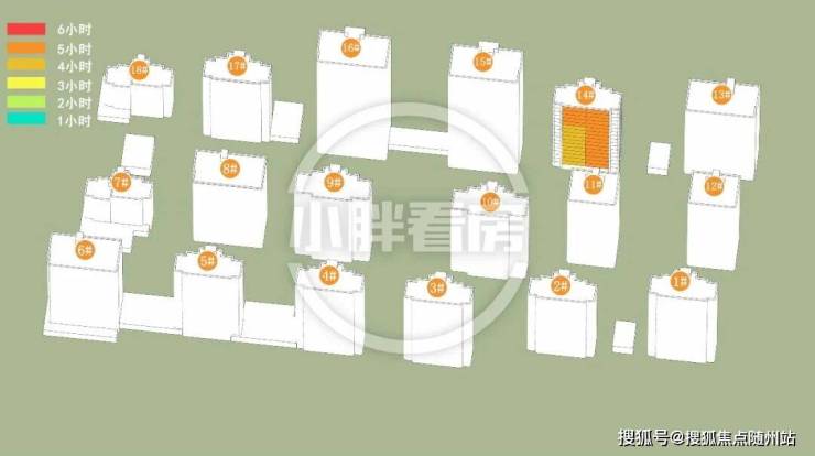 冬季:14#中低层受遮挡。就具体遮挡时间而言,14#全天不同时间段均会受到遮挡。