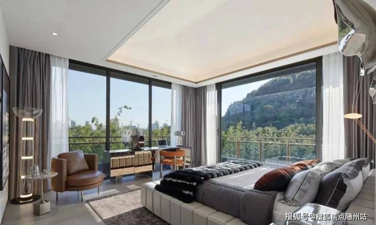 山景玻璃横厅:8米开间餐客厅,270°环形景观视野,金属玻璃幕墙增强采光;