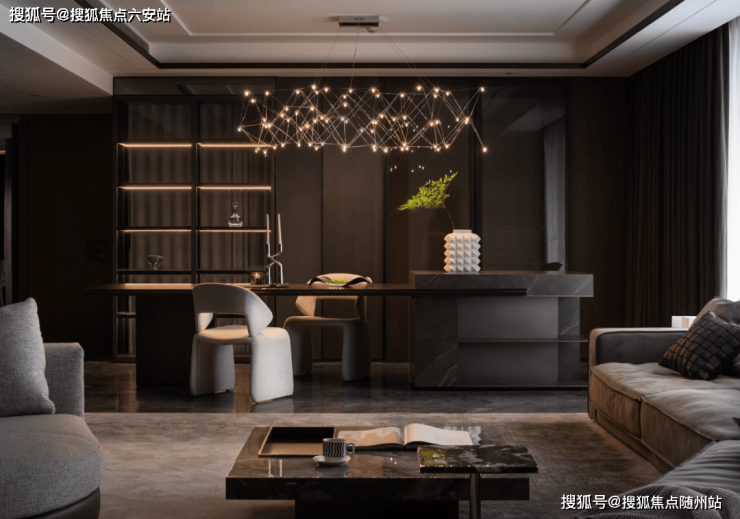 全屋都是暗色最大的弊端就是沉闷无趣,因此设计师通过多种材质、肌理的碰撞,金属、皮革、玻璃、布艺……让黑色表达的更有意味。