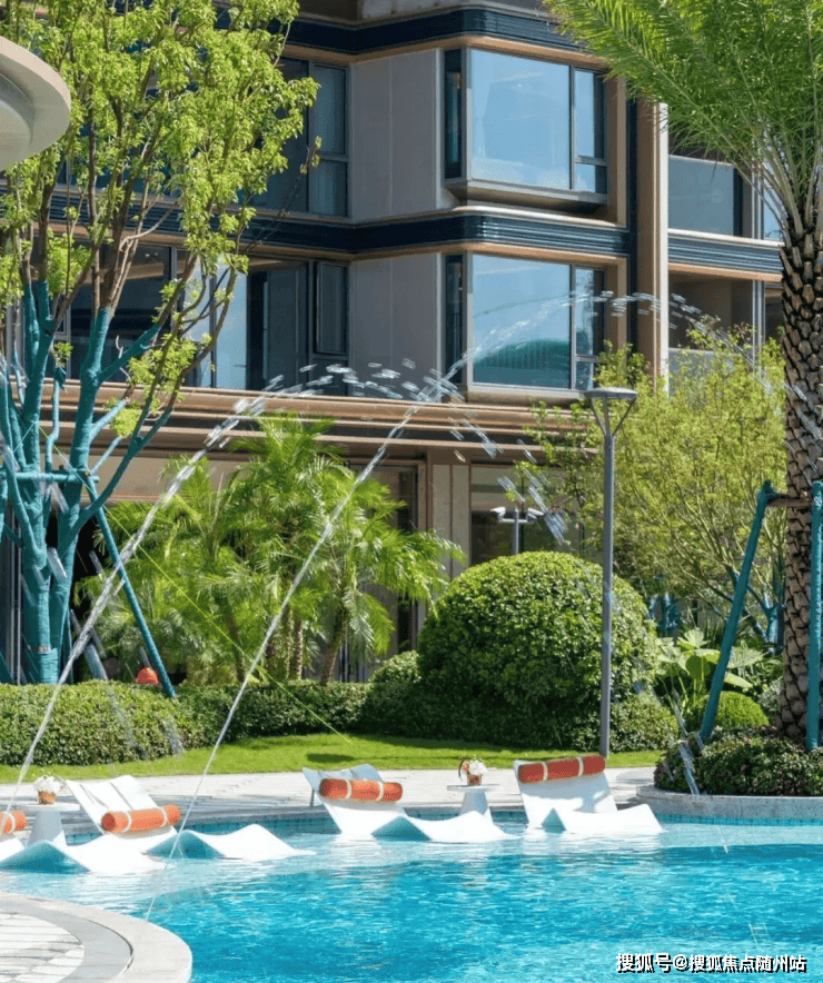 小区的园林景观一如既往延续了滨江的水准,中心区域设置了自然度假式的景观水池,配合棕榈等热带植物,结合着开放式酒廊和下沉卡座,整体度假氛围很不错。未来园区内还会设置童玩区等设施。