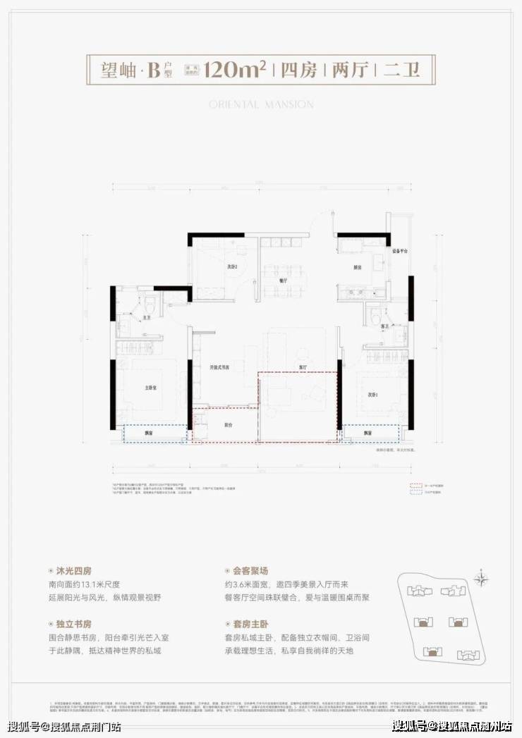 南向三开间朝南,约9.8米大面宽,约7米阔绰阳台,餐客厅贯通,并连接阳台,百变待客空间;套房式主卧,南联阔景飘窗,栖居更温馨舒适。