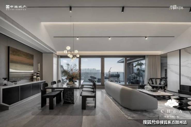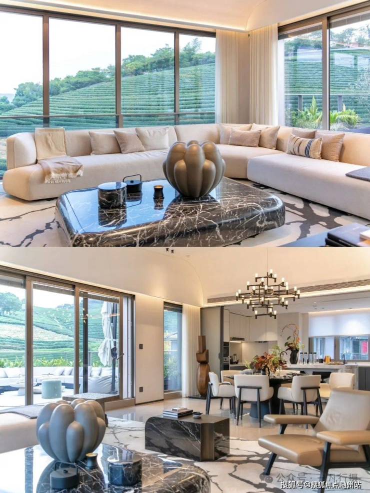 巨幕观景客餐厅,全落地通透超大玻璃,辅以270°跑道阳台,共享茶山、日落与晚风