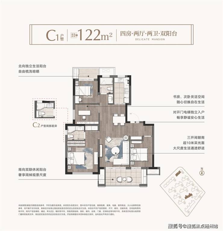 新中式建筑风格,建面约92-133㎡精装三至四房,96㎡臻稀3房,122㎡、133㎡阔景4房,功能完善。