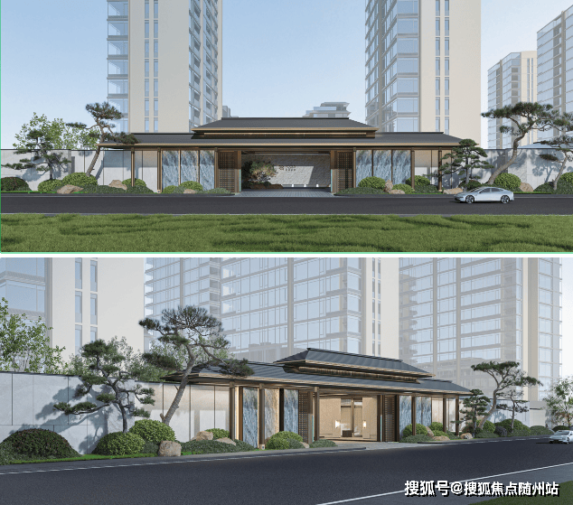 1️⃣铝板石材立面+会所泳池