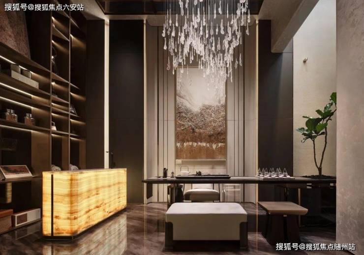 客餐厅采用一体化设计,通过石材、影木、皮革、金属、玻璃等不同材质在光影下的交织,形成张弛有度的现代轻奢多元的场景体验,内敛优雅,充盈着浓郁的都市质感。