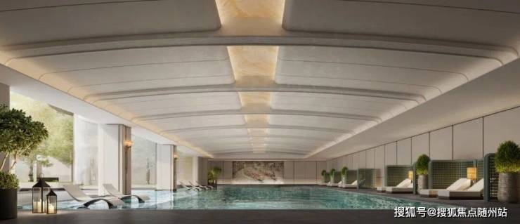 在这里,你能拥有什么?一座约标准泳道的恒温泳池,配备泡池与漂浮躺椅,通过大面积玻璃引入天光,游弋其间如同置身度假酒店的无边水境。
