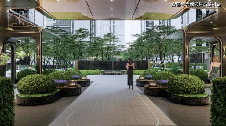 比如“原生围合社区”、风雨连廊,从高奢酒店中获得灵感的酒店式落客区、度假风园林,以及千万级住宅中都不多见的下沉式会所!