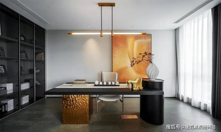 家人的互动和陪伴在时下快节奏的生活中显得尤为宝贵。书房开敞式布局毗邻客厅,一扇门扉使得整体空间可分可合,边界感得以模糊。满足户主在书房中阅读或是享受个人爱好时间的需求,偶尔在书房中工作的同时还能陪伴客厅中的家人闲聊沟通,更显情味和人文关怀。