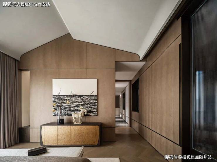 和纸亚克力顺应墙体向上折叠,几乎是艺术馆才会出现的美术装置,这些精雕细琢的动作就是大师设计对生活美学的尊重,而在开发者的把控之下,从室内功能场景到每个装修细节,所有团队都是一体化思考的,只为了交付后最完美的居住体感