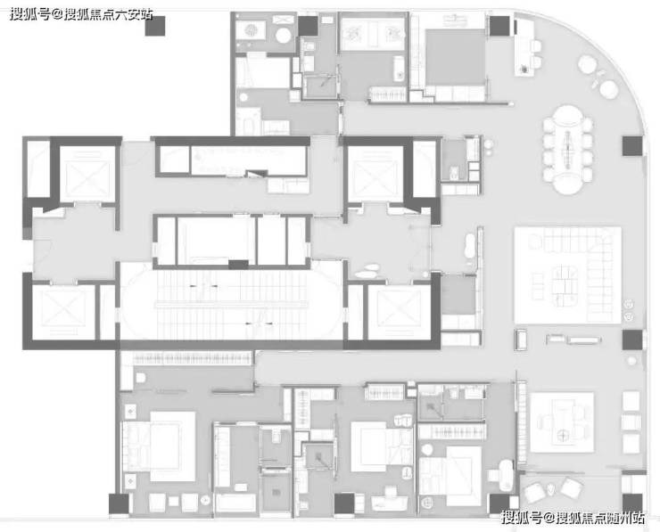 胤璞“玉璞”390方:五间豪华套房与三大公共空间的布局,能够满足每一位家庭成员的个性化需求。双重入户动线与私属门厅玄关,尽显归家的尊崇礼序。而更亮眼的是“荣耀”700方户型中那片高达约300方的私家屋顶花园。借鉴宋画山水,为居者与奥体繁华之上独留一处都市桃源。