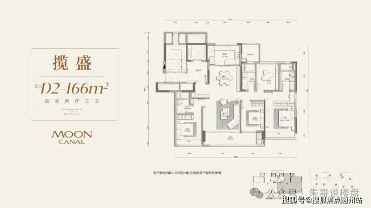 130-166㎡户型: 定位高端改善四房,面向对生活品质有更高要求的家庭,强调空间的尺度感、功能分区及科技系统带来的舒适体验。