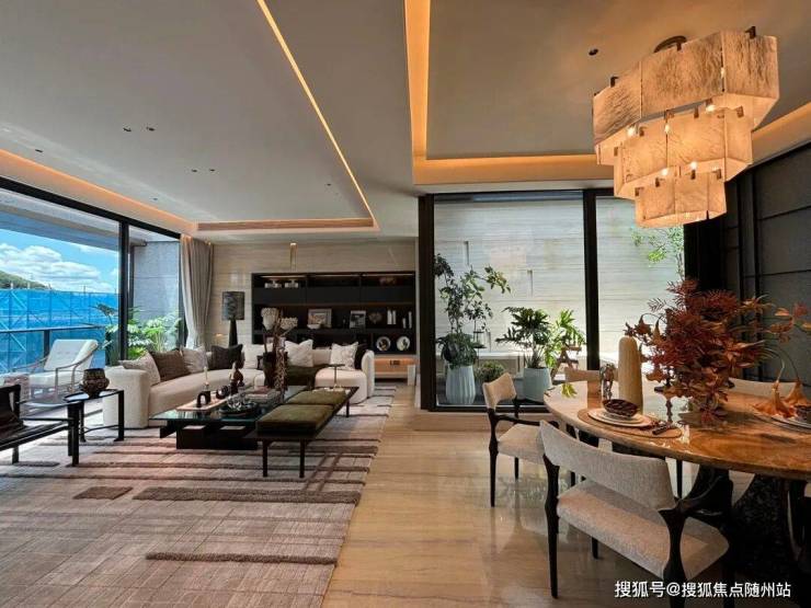 下叠空间则以另一种语言诠释着生活的温度——在这里,庭院与室内的边界被温柔消弭,高定沙发正静静等待归人,大理石餐桌上凝固着月光般的雕花。这些器物会记住生日蛋糕的甜,也包容深夜归来的苦——整装交付的不仅是家具,更是未来生活的全部脚本。