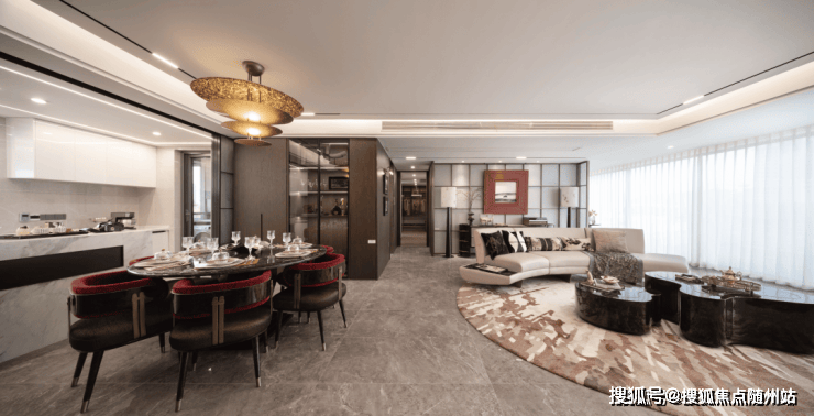 步入室内,超70㎡的社交生活主场,足以承载家庭欢聚、老友宴请等多元场景,是主人气度的最佳彰显;中西双厨的可变式灵活设计,兼顾了中式家宴的烟火气与西式烘焙的仪式感,独立家政阳台则一站式解决洗衣、晾晒、储物需求,让居家空间整洁有序。