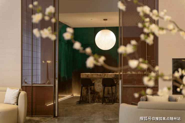 在杭州沄璟,奢居空间的营造标准,在建面约145㎡户型临时展示单位内,被诗意的表达和演绎。巴黎蒙田大道,以激光蚀刻进香奈儿旗舰店青铜立面的山茶花,如今被蚀刻进杭州沄璟文的电梯门;入户门高定的“艺术壁龛门牌”,彰显独特的品位和身份。