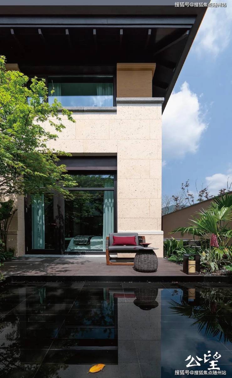 延续三四五期“东南亚+中式”独有经典风格,外立面采用白洞石石材,纹理自然厚重,与山水环境浑然一体;大面积落地玻璃门窗布局通风置景俱佳,引光纳景间,将院落尊贵感与自然感糅合至“天地人和”境界。