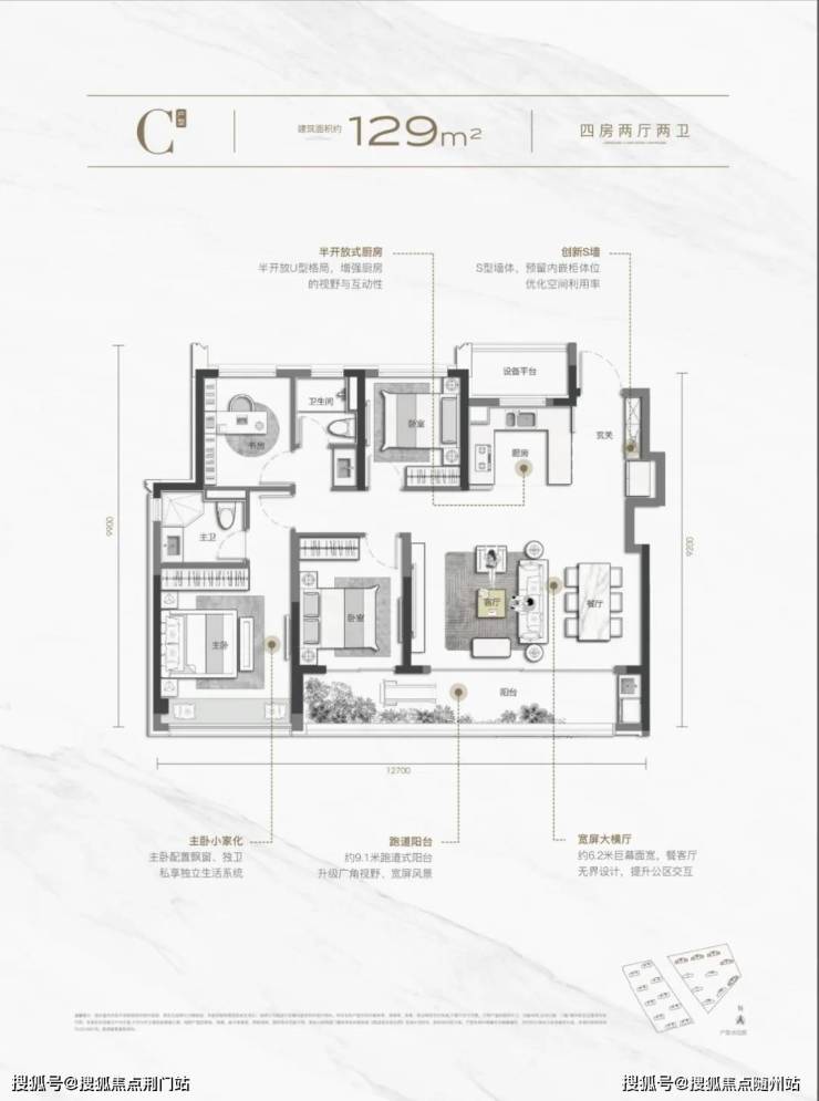 四开间朝南+三面景观阳台