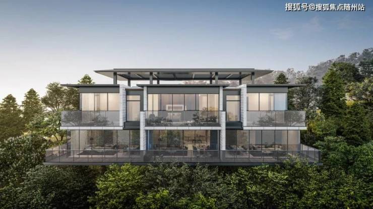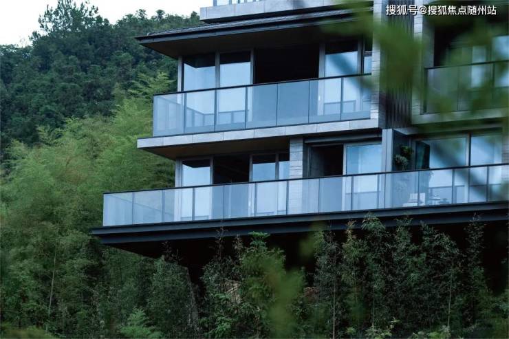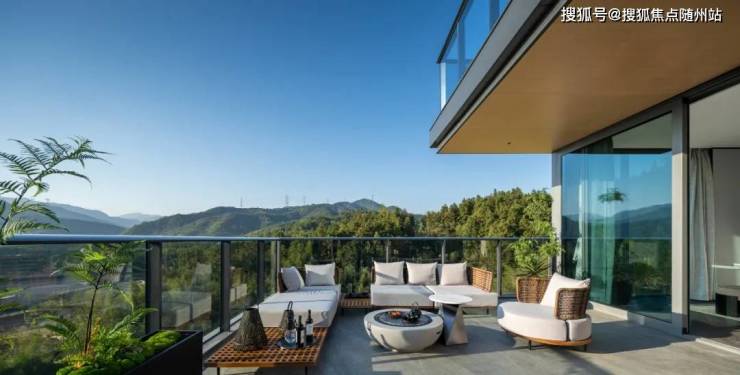 [玻璃山房]南向,以大面积落地玻璃窗,将风景迎入室内,经由充分的通透感拉近人与自然的距离;迈出房间,便为270°“环景大露台”,既拥有高度秘密性设计,还能将生活沉浸在群山环抱中,感受对饮湖山的豪情。