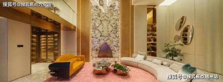 耀眼的不止玉影。大门后的四水归堂,墙面铺的是巴西进口“璀璨年华”奢石,波纹连成一幅南宋赵黻的《江山万里图》。