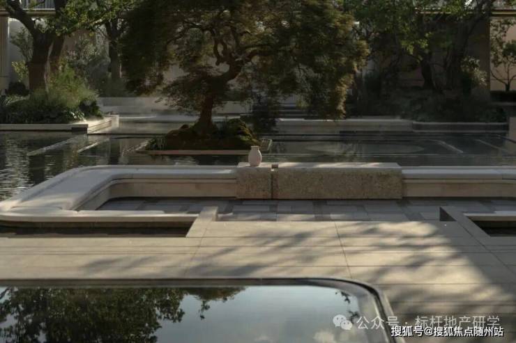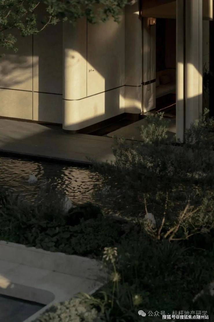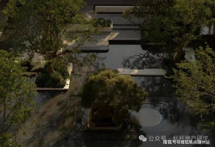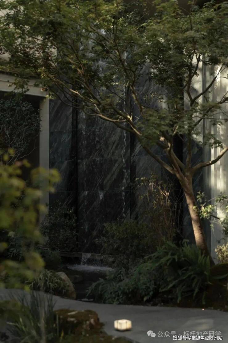 在前场景观体系,苏州招商序又围绕6幕归巢洄游序曲,创新提出将平面景观变成立体景观,通过超600㎡水院与后场归家庭院的嵌套、地面庭院与下沉庭院的垂直呼应、近两百岁名木羽毛枫的点缀,有层次地加强人与人、空间、生活的自然交往。