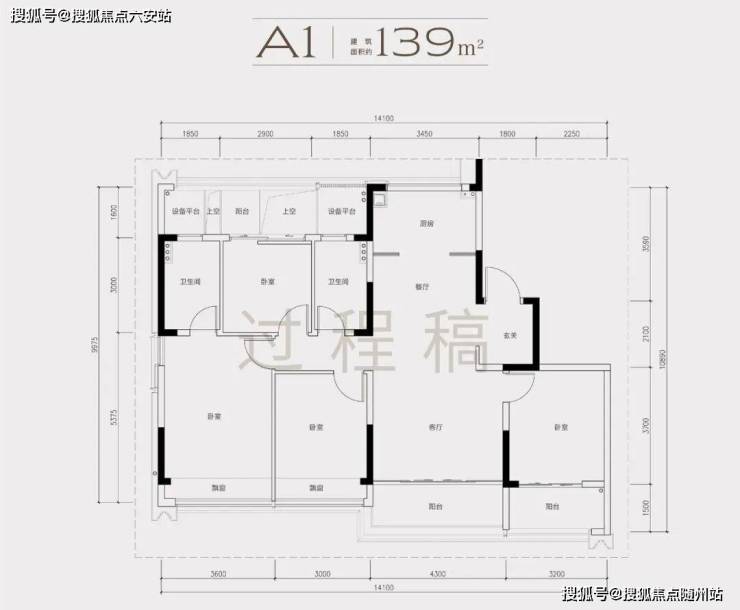 建面约139㎡户型实现类一梯一户设计,南向开间14.1米,四开间朝南;约170㎡户型餐客厅面积达44㎡,厨房开间4.35米;约190㎡户型创新打造五房三卫,主卧配备270°无柱转角飘窗。