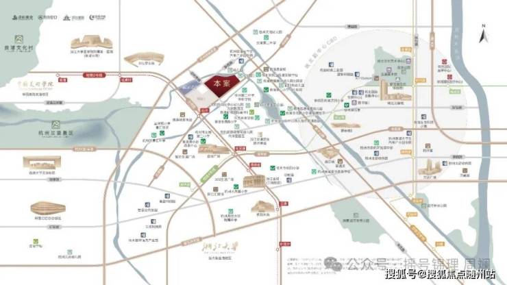 和萃揽悦为原点,画一个新房比价系统的坐标轴,它北面的良渚此前新房限价差不多是2.9万/方,东面的城北万象城一带是3.2万出头,南面的三墩是3.68万/方。