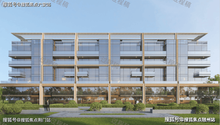 首先整个项目的石材含量特别高,用了大量石材与仿石铝板,强调了它的厚重感。从门头开始,到园区柱廊,璟逸都用了大片的纯色系石材,就像一座隐奢酒店,就连连廊的吊顶,都全是同色莱姆石。