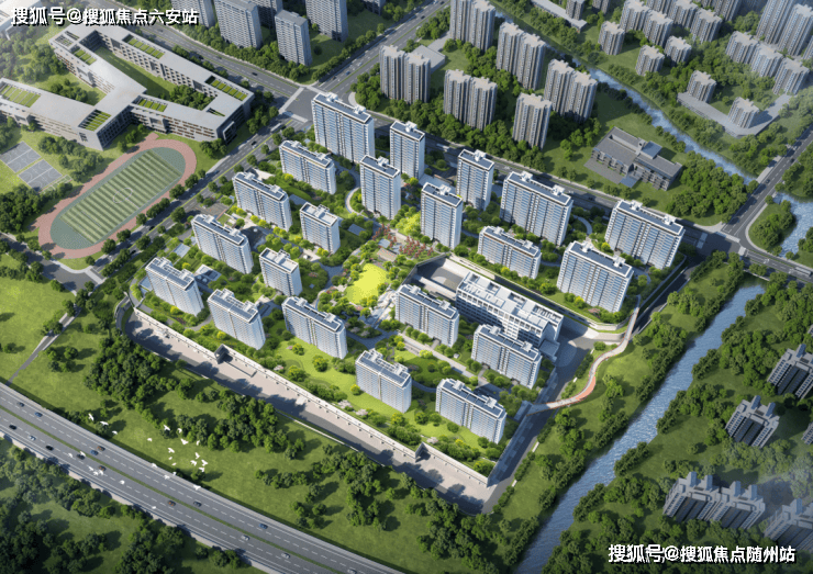 滨水公园、花园社区、九年制108班大型中小学(在建)