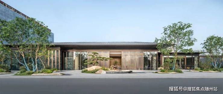 外立面以新型干挂材料结合玻璃、铝板,呈现现代东方美学;主入口采用“普拉达绿”奢石与罗汉松造景,彰显归家仪式感。