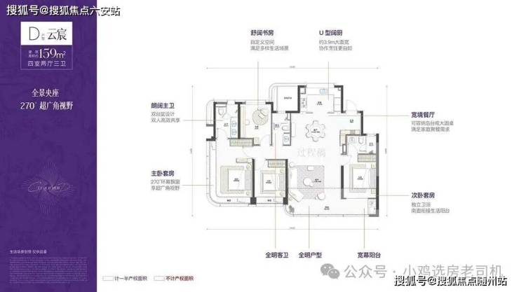 139㎡:空间感强,主卧带270°转角飘窗,采光视野俱佳;