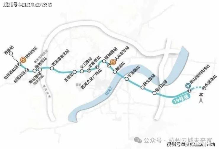 机场快线19号线:直距约870米火车西站站,始于苕溪站,通向萧山机场方向永盛站。