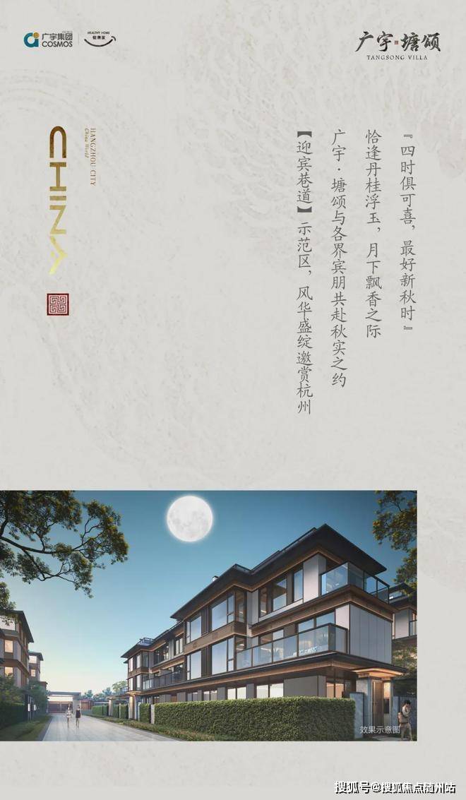 广宇·塘颂楼盘的出现为杭州临平塘栖古镇带来了全新的生活方式。中式合院的纯粹美学与当代生活的需求完美交融,在这里您将能够感受到宋风美学的独特韵味。同时,周边配套的完善与便利的生活环境,将使您享受到无与伦比的居住体验。来广宇塘颂,感受历史与现代的交融之美!