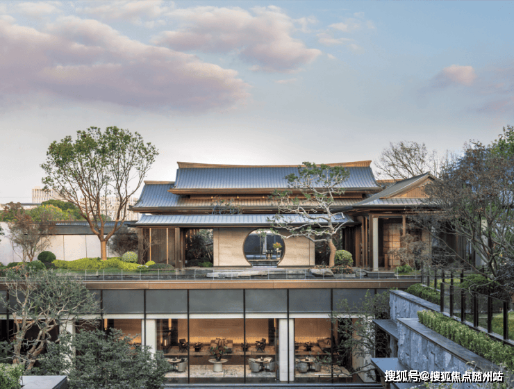 望潮的江墅,容积率低至1.1,延续了一期经典的禅境中式风格,用石基座、横披檐、悬山顶的传统设计,来营造庄严精致的外形。