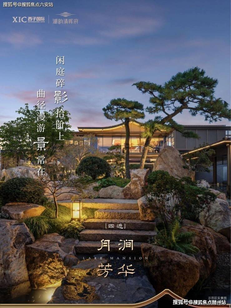 造园有法 园林设计· “一轴两苑八景山水花园九巷”,层层递进,·借东沙湖景,引水入园,叠山环水,构成江南水乡的居住意境。· 师法郭庄,独创“五进式”东方礼序空间。· 用心甄选素有“松之王”之称的珍品级黑松。· 巨峰飞瀑如银河倾泻,消弭外界喧嚣,归家心境豁然开朗。· 以中央水苑为心、连廊为轴,串联起一方赏月胜地。· 规划“两街九巷”形制,并独创约6.5m超宽街巷。
