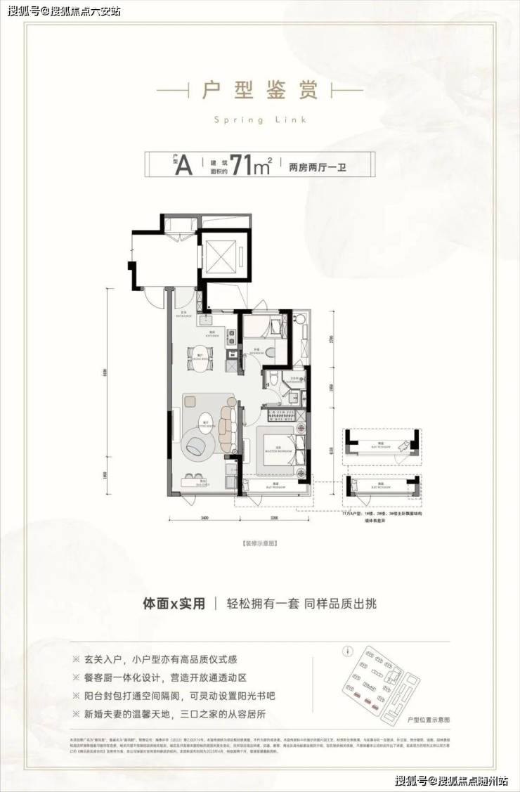 项目主打71平方米到114平方米的多种户型,精装现房即买即住,为不同需求、不同预算的青年客群提供了丰富的选择空间。
